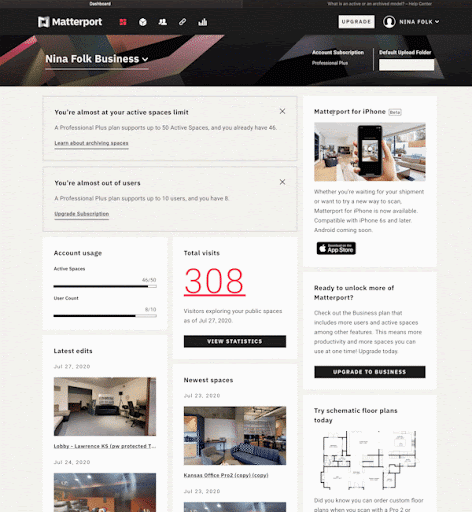 - また、お客様のプランに関連したMatterportのプロモーションがカードに表示されます。