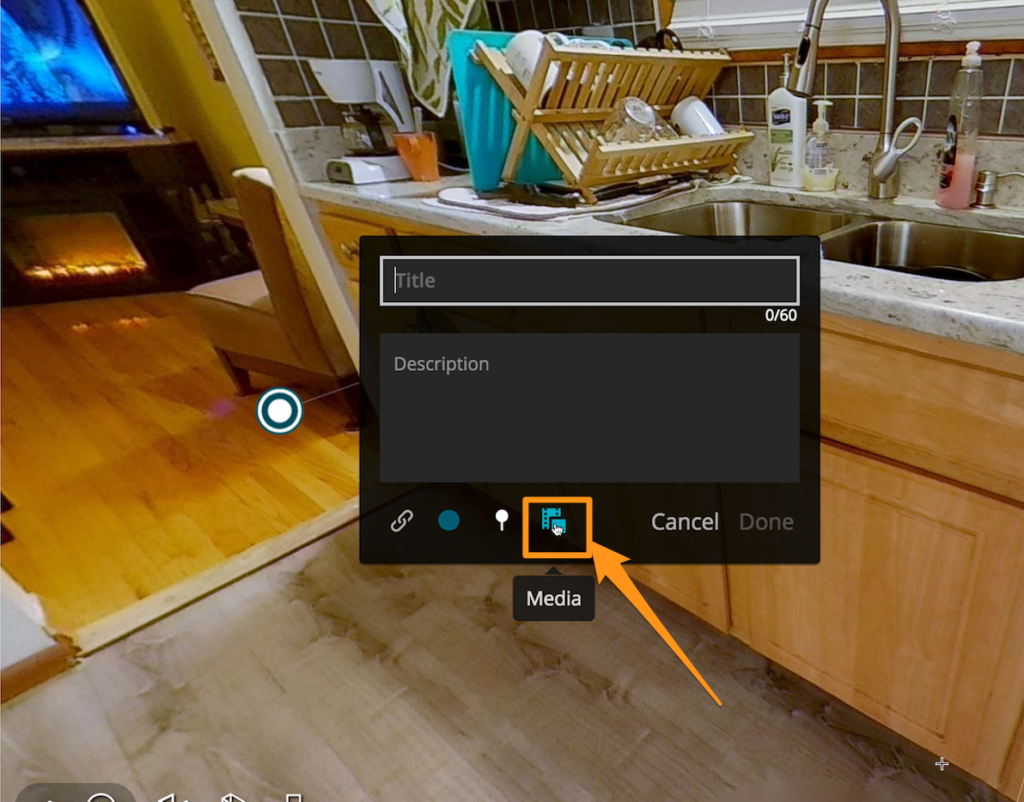 利用方法は、Matterportで編集モードを選択し、メディアを追加してマッタータグを追加したい場所をクリックします。